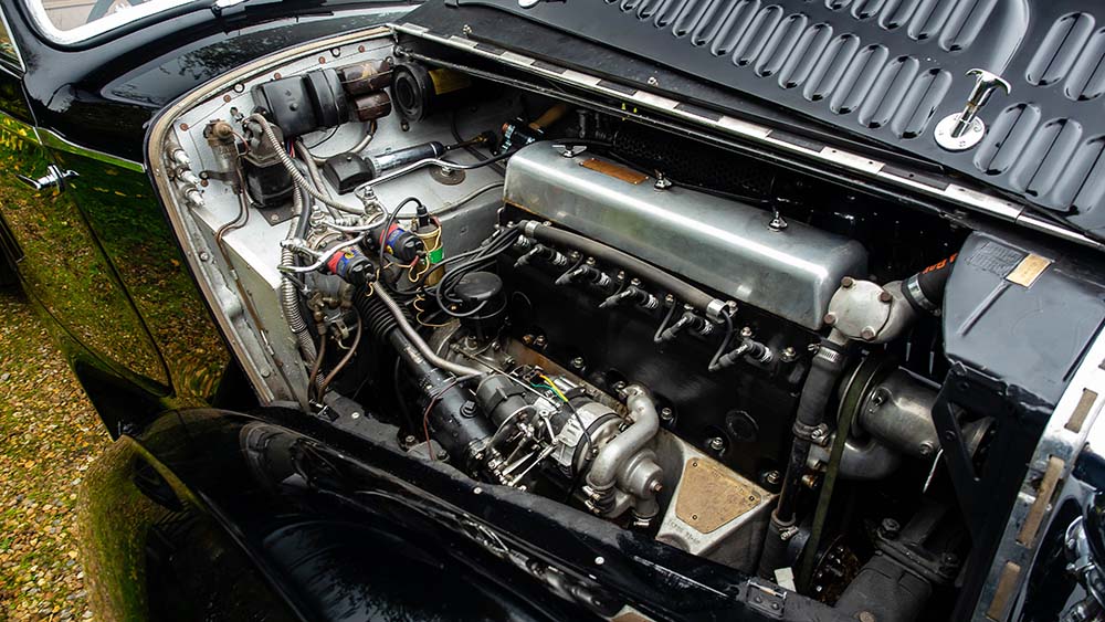 This Alvis 4.3-Litre carries drophead coupé coachwork by Whittingham & Mitchel, a company based in New Kings Road, West London and after WW2 in Byfleet, Surrey. W&M were best known as contract body builders for major manufacturers, but did accept commissions on more upmarket chassis such as Alvis. Virtually identical in style to the short-chassis Vanden Plas Tourer, the bodywork is unique and probably designed to the first owner's specification. It is unusual in having a fully concealed hood and, being an occasional four-seater, providing ample luggage space for long-distance touring when the rear seats are folded away.